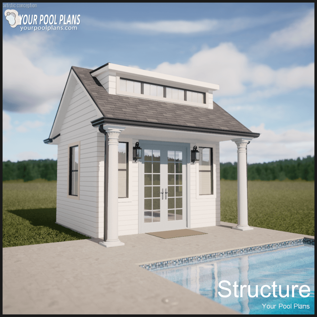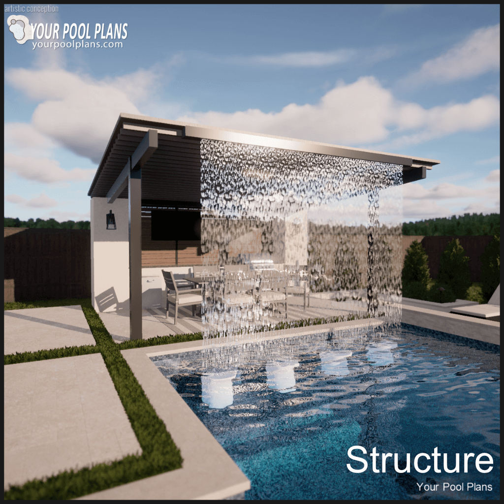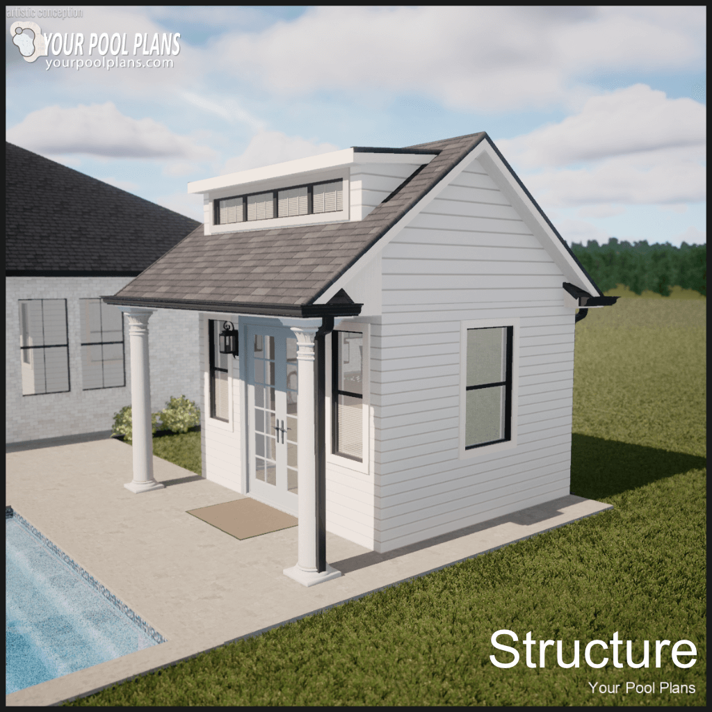 If you require an outdoor living structure for a swimming pool design this needs to be added to your preliminary pool design order. This includes structures of conventional or typical design style as an add-on to your preliminary pool design. Kitchen is not included.